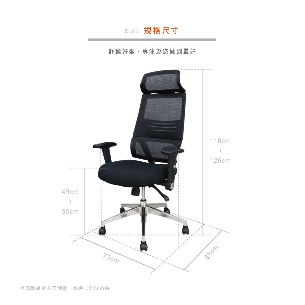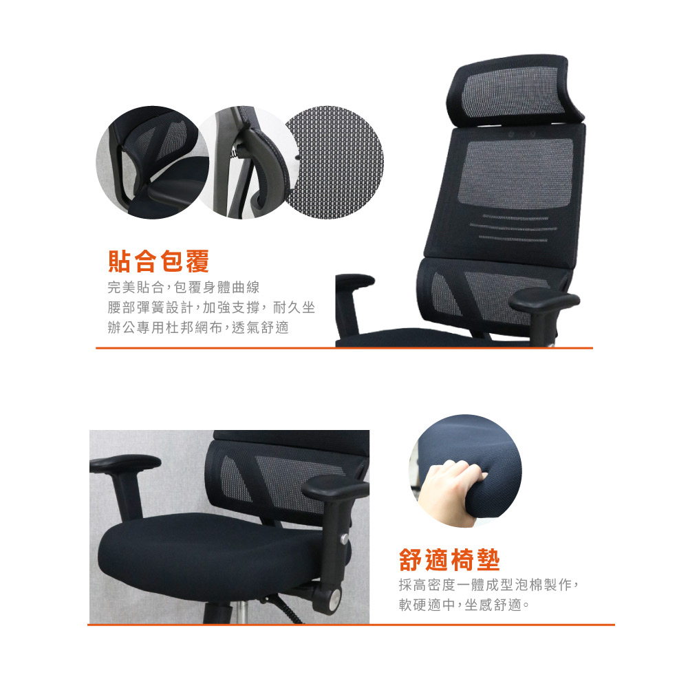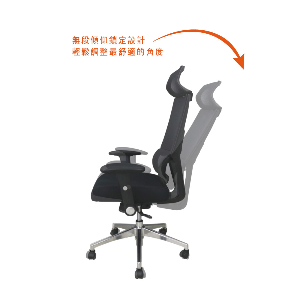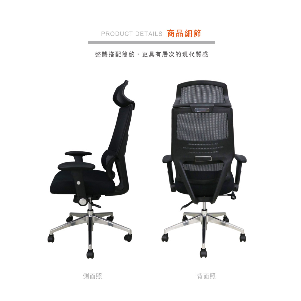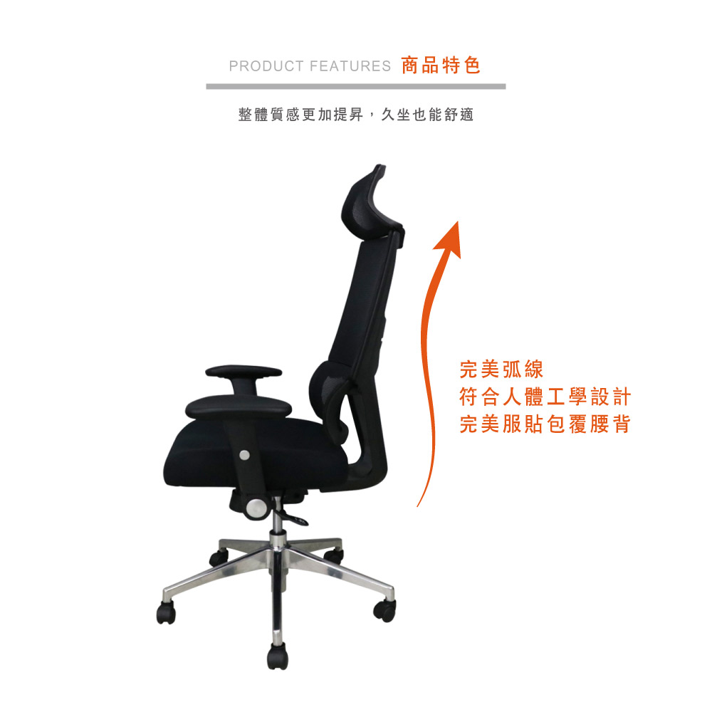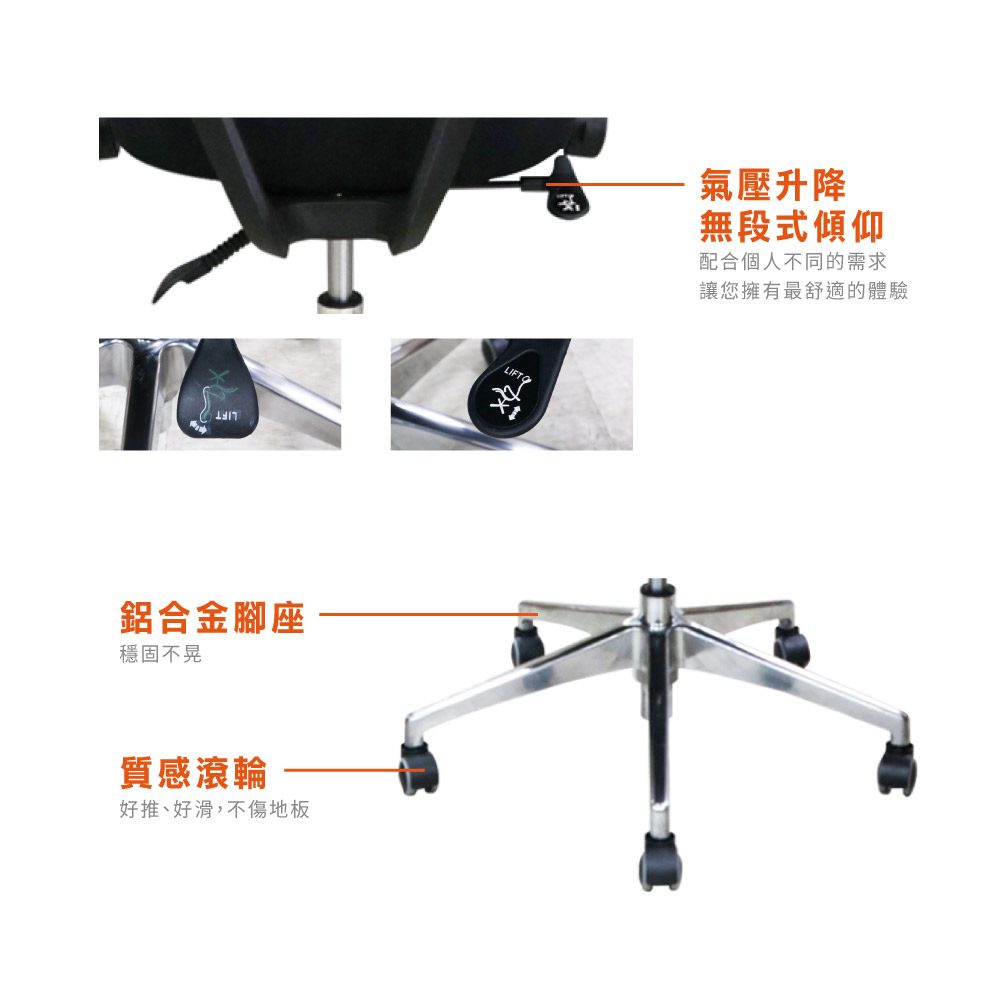 材質:辦公專用頂級杜邦網、高密度成形泡棉、鋁合金腳座