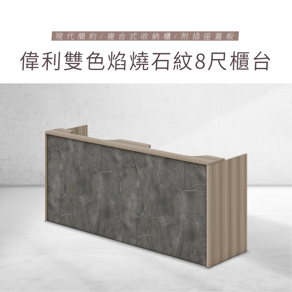 偉利雙色焰燒石紋8尺櫃台