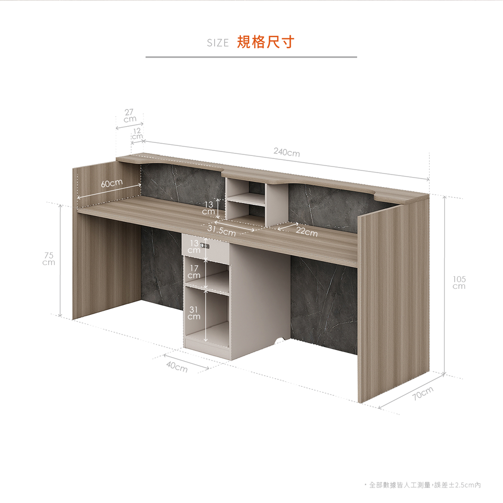 尺寸:寬240 x 深70 x 高105 cm