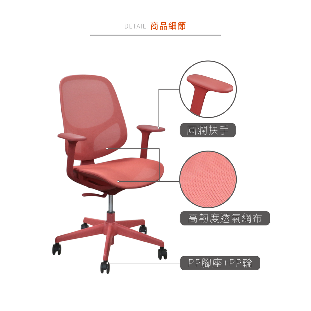 氣壓升降、一段傾仰鎖定,透氣服貼,線條簡約美形,辦公居家兩用皆宜。