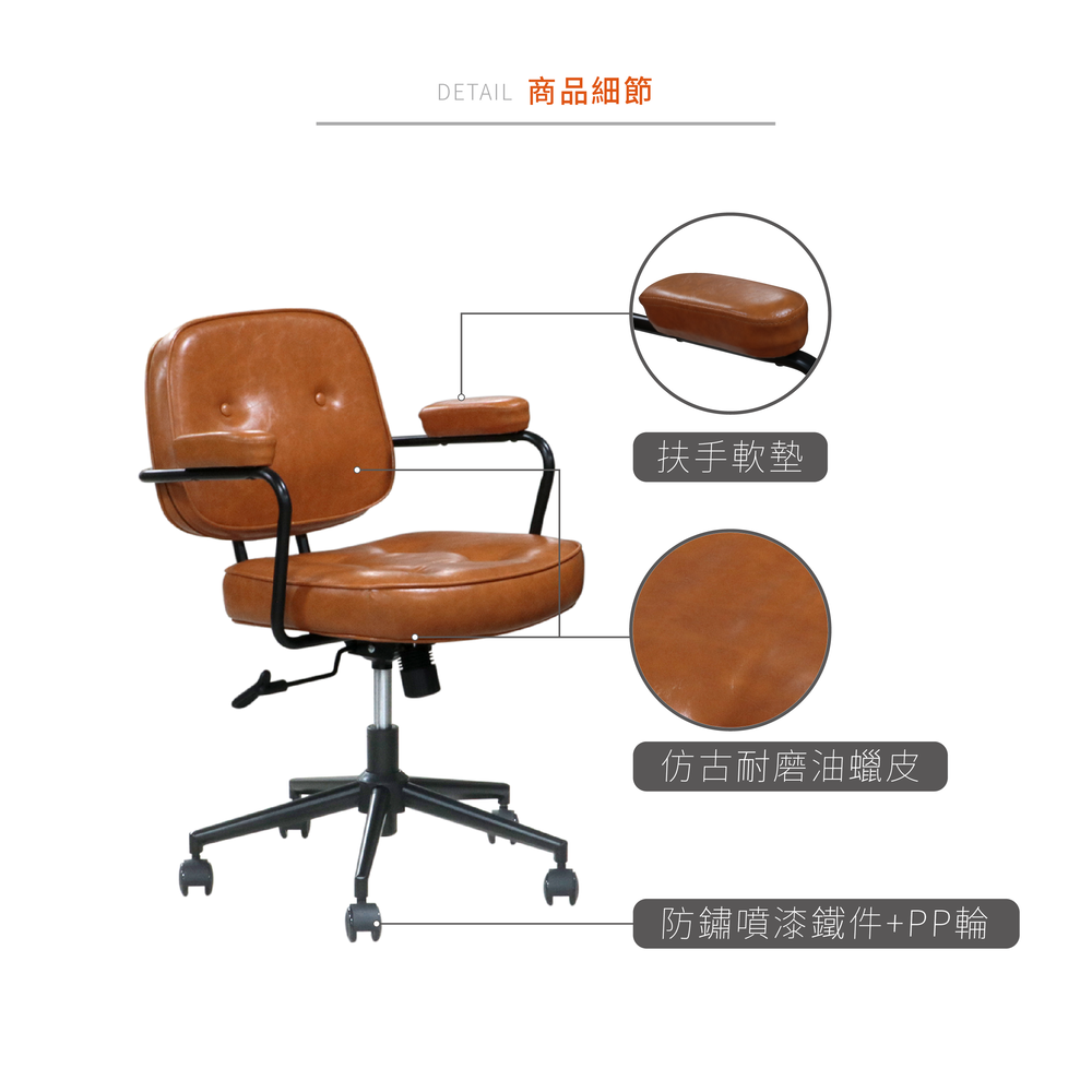 【預計3月底到貨】紐約復古感皮面辦公椅