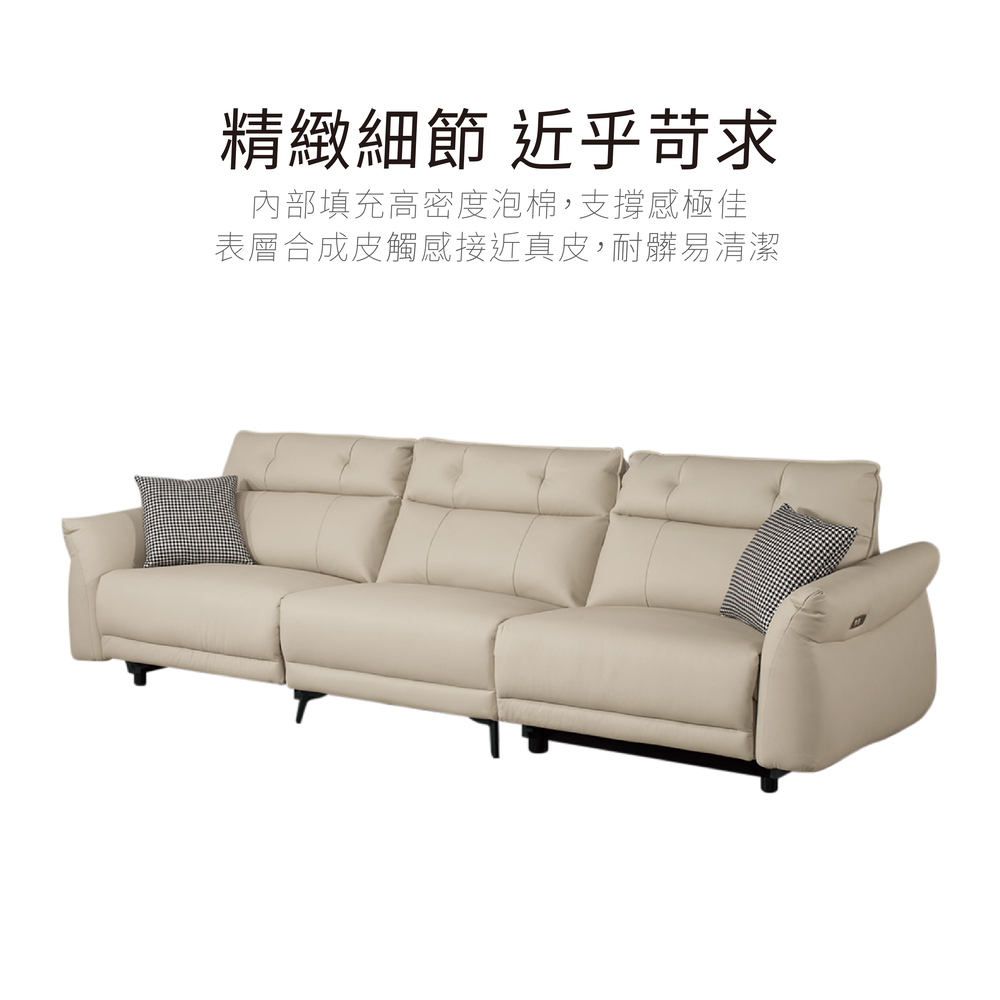 高級人工生態皮、實木骨架、高密度泡棉、電動機構