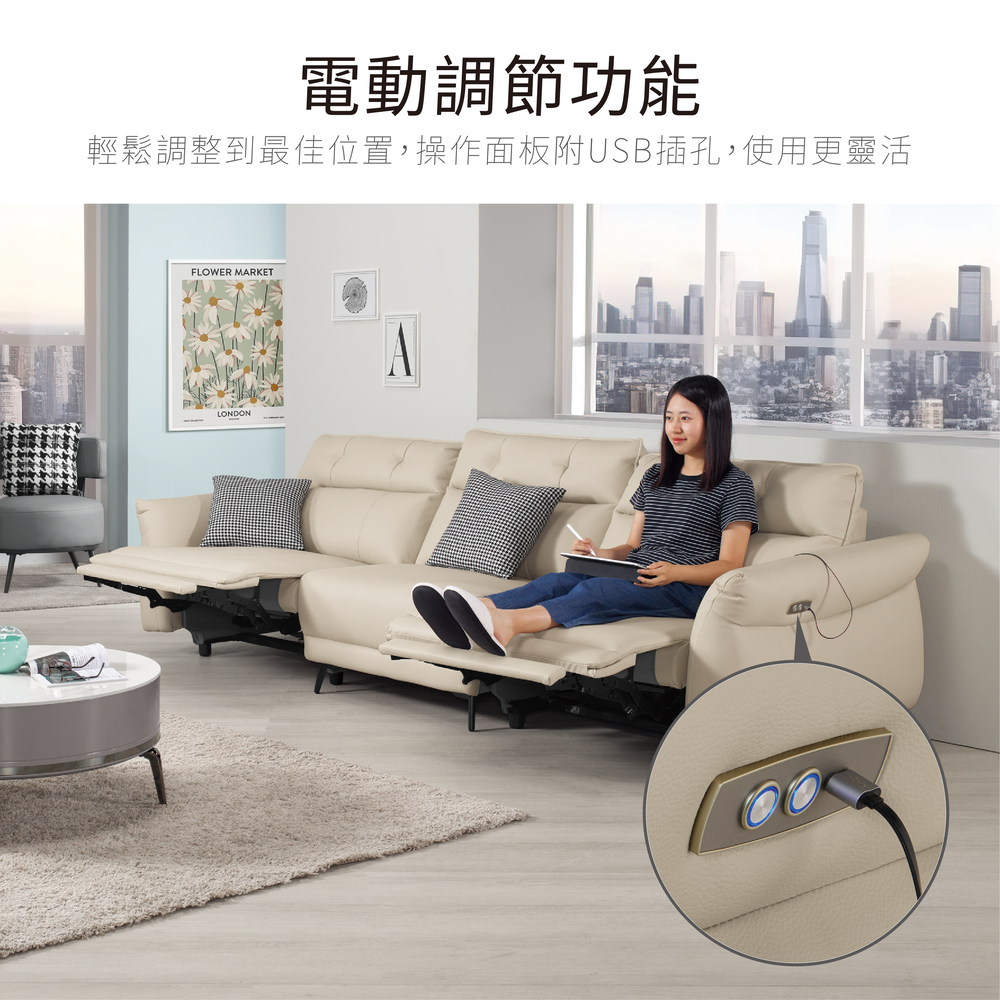 時尚簡約,俐落大器,無段式電控調節仰躺角度,服貼舒適,辦公居家皆宜。