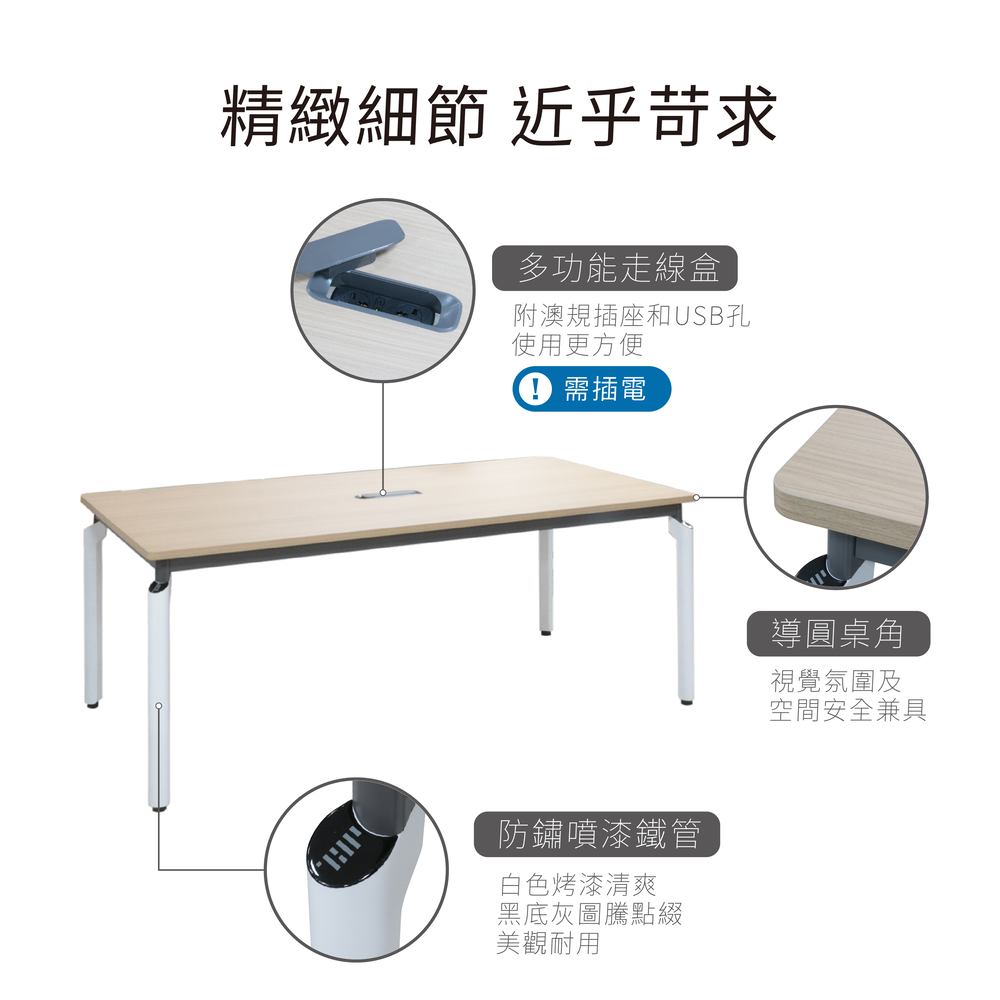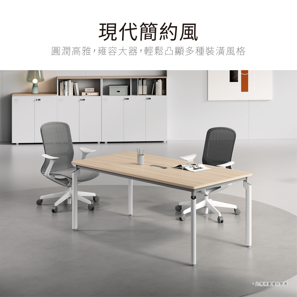 時尚俐落,簡約中帶有設計感,可作會議桌、工作桌。6~8人可舒適使用。