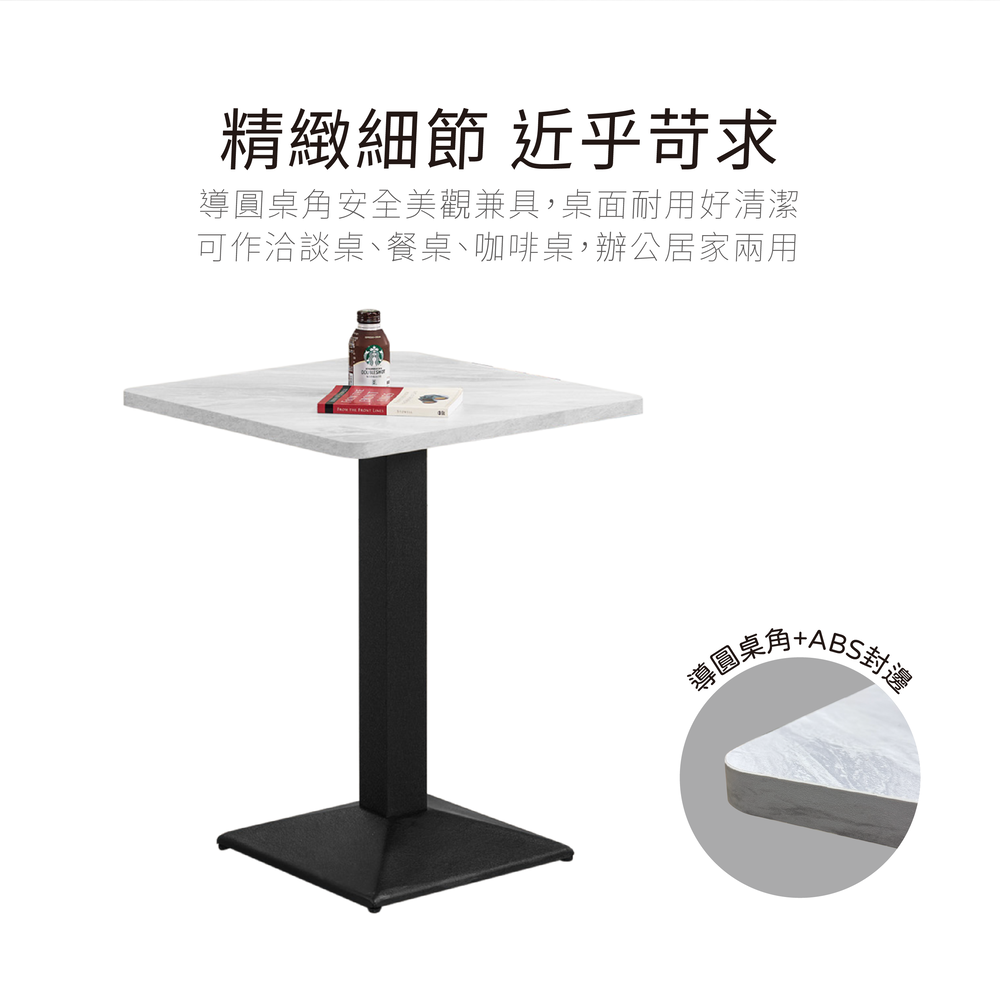 簡約俐落,耐用好清潔。可作洽談桌、餐桌、咖啡桌,辦公居家兩用。
