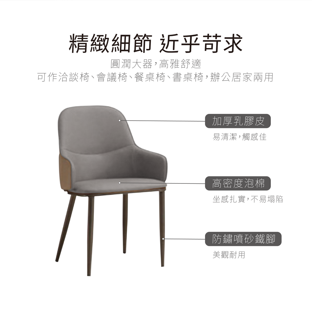 圓潤大器,高雅舒適。可作洽談椅、會議椅、餐桌椅、書桌椅,辦公居家兩用。