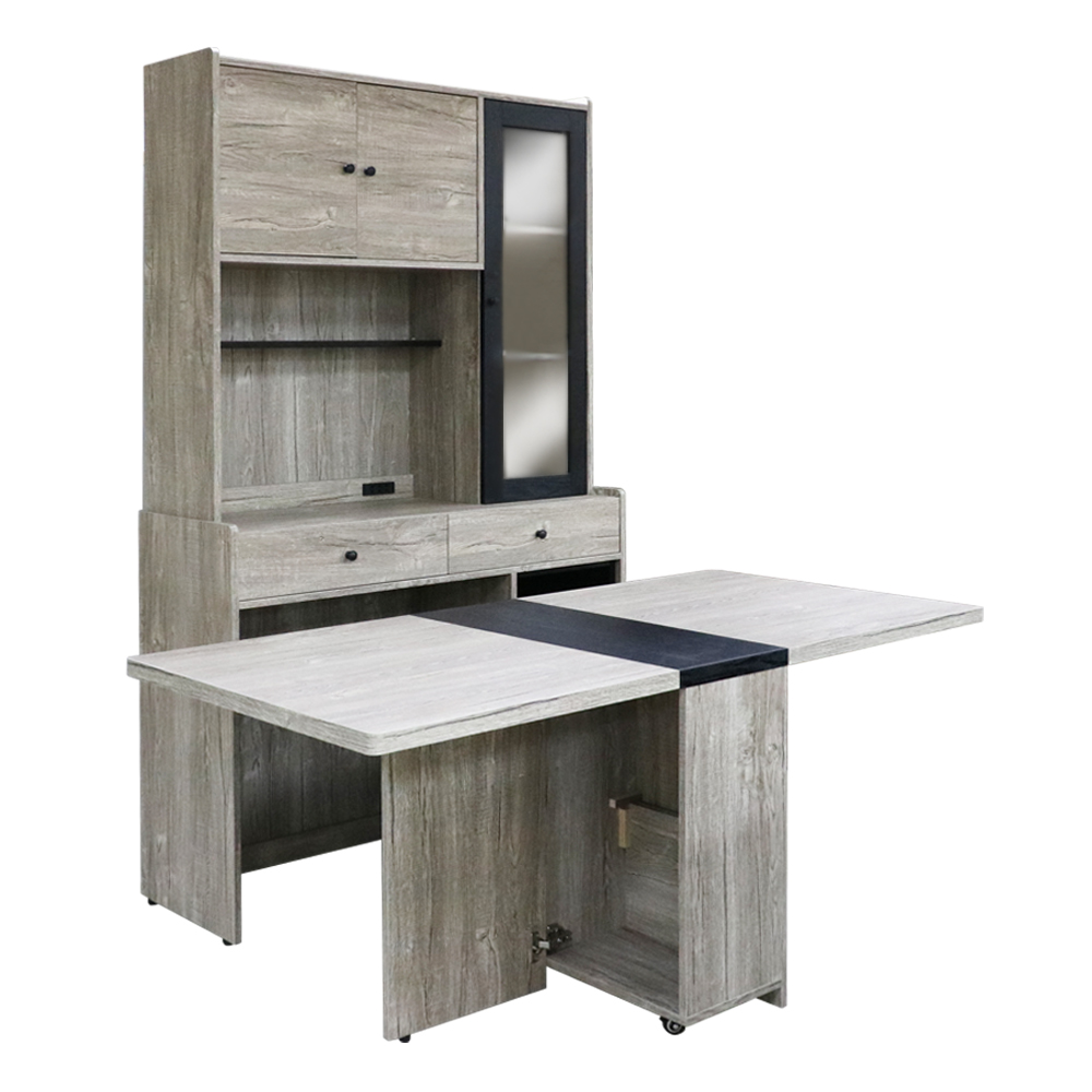 輕工業風配色亮眼質感佳,複合式收納餐櫃內建插座好用順手,收納型餐桌可2~6人舒適使用。都會空間首選。 展示地點: 台中門市(黑梧桐)