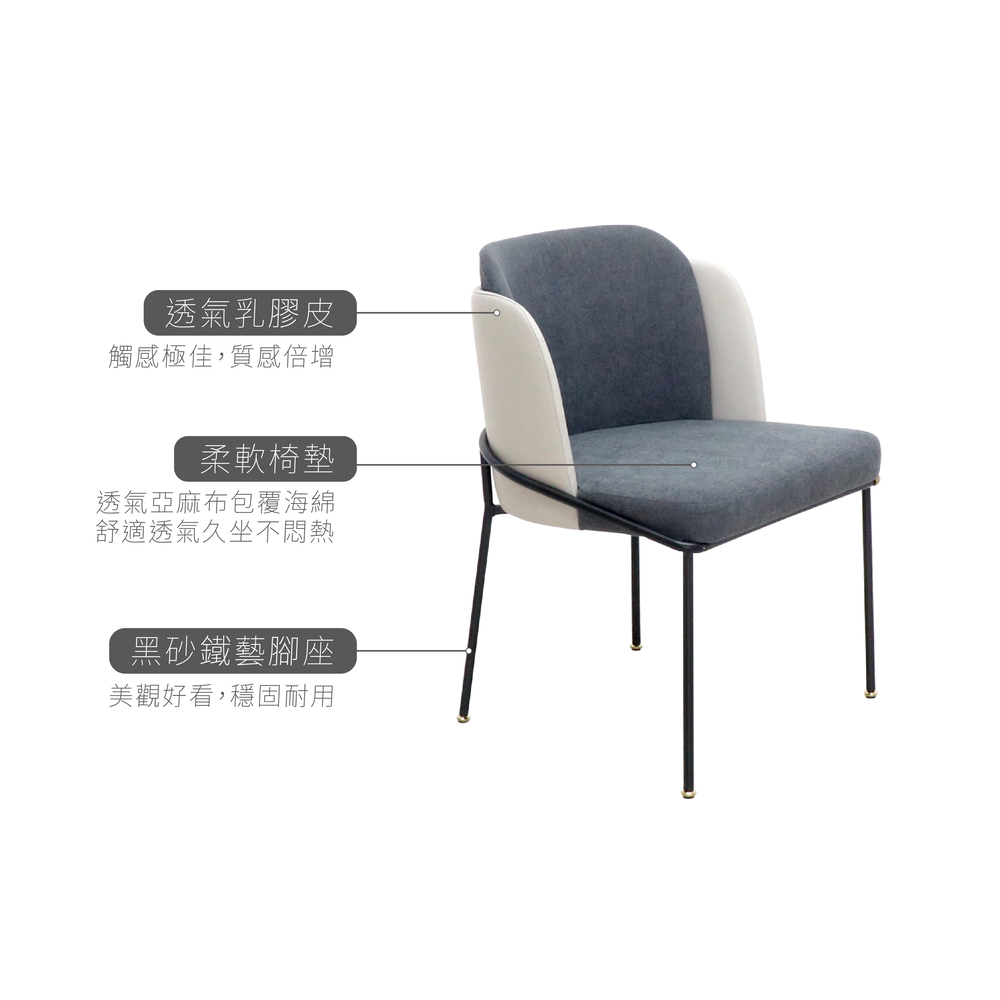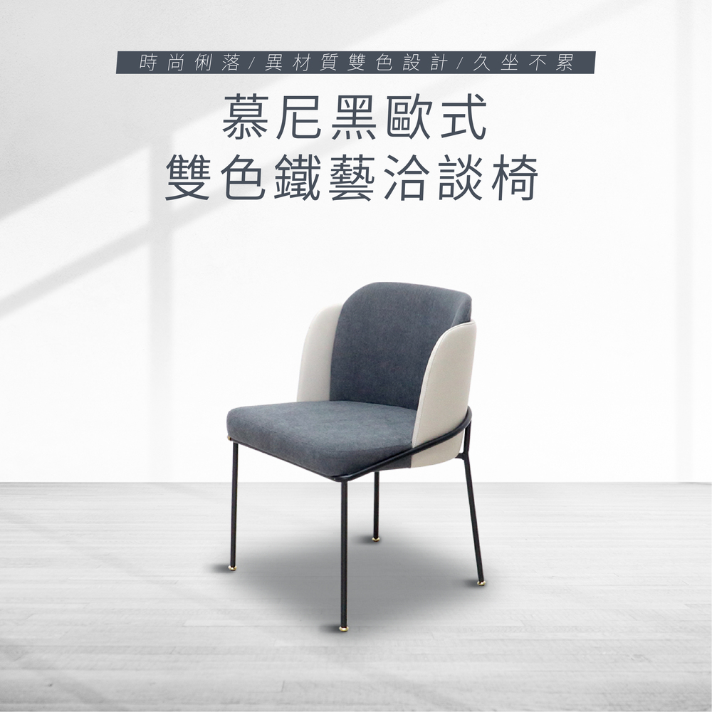 時尚俐落配色亮眼耐看,異材質雙色設計美觀舒適兼具, 鐵藝腳座耐用質感佳。可作洽談椅、會議椅、迎賓椅。 展示地點:台北*1、新竹門市*2
