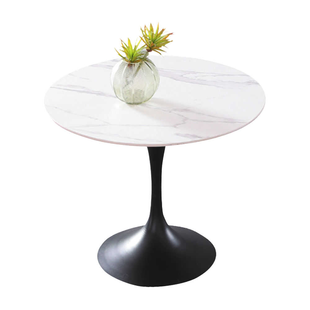 最新型岩板桌面耐高溫/耐磨/零滲透,清潔容易,流線形鐵藝腳座呈現簡單中的設計感,辦公居家兩用皆宜。
