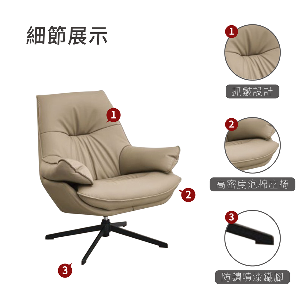 現代俐落,舒適服貼,可作迎賓椅、單人沙發、休閒椅,辦公居家兩用皆宜。